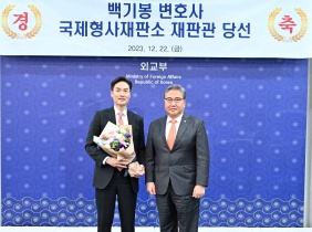 박진 장관은 2023년 12월 22일 오후 4시 외교부 서희홀에서 백기봉 변호사의 국제형사재판소(International Criminal Court, ICC) 재판관 선거 당선 … 2023-12-26